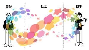 相手からその対価として、お金やサービスなどが返されて社会をとおって、自分に返ってくる。